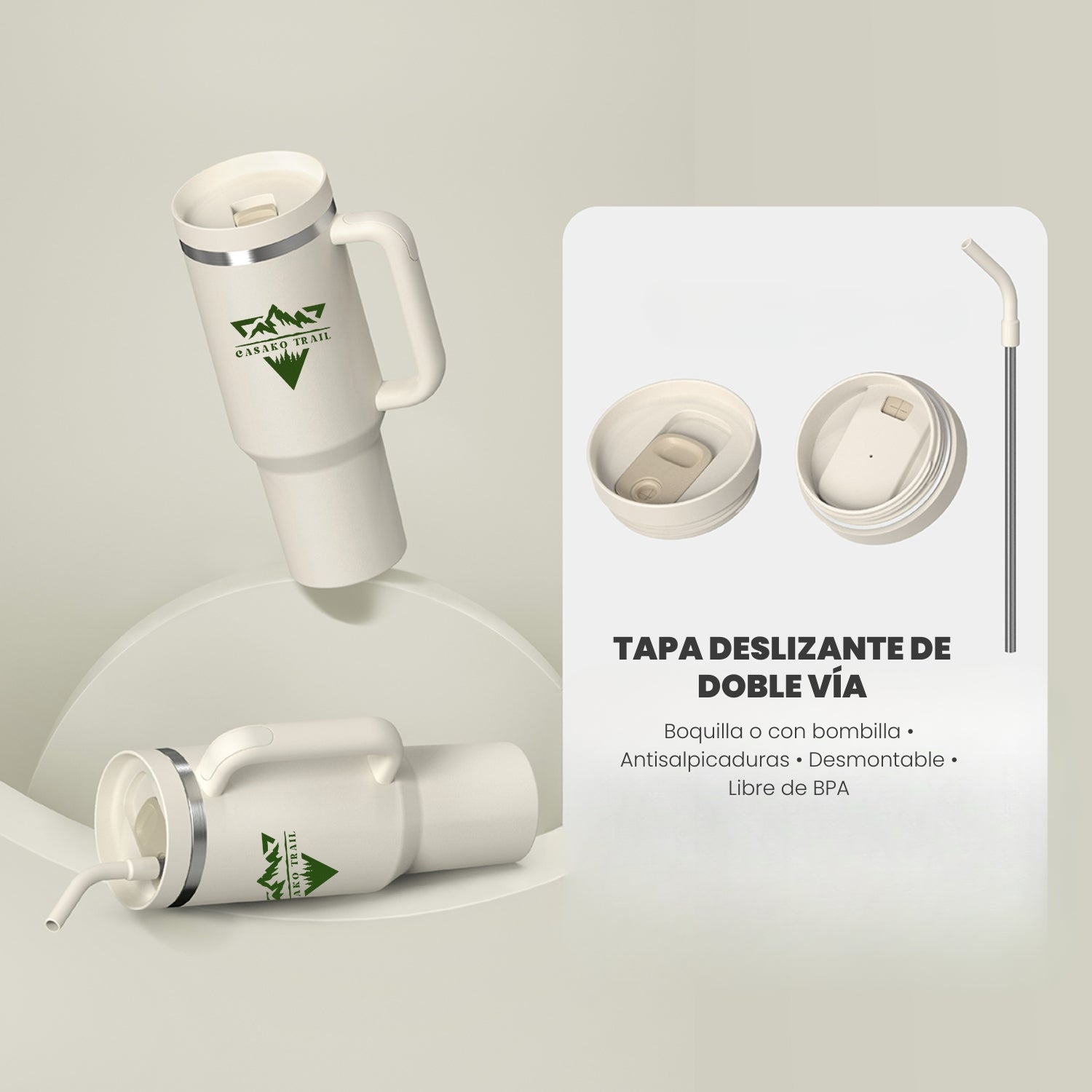 Tumbler térmico 1,2 L con asa y bombilla Trail acero inoxidable Marfil Starlight