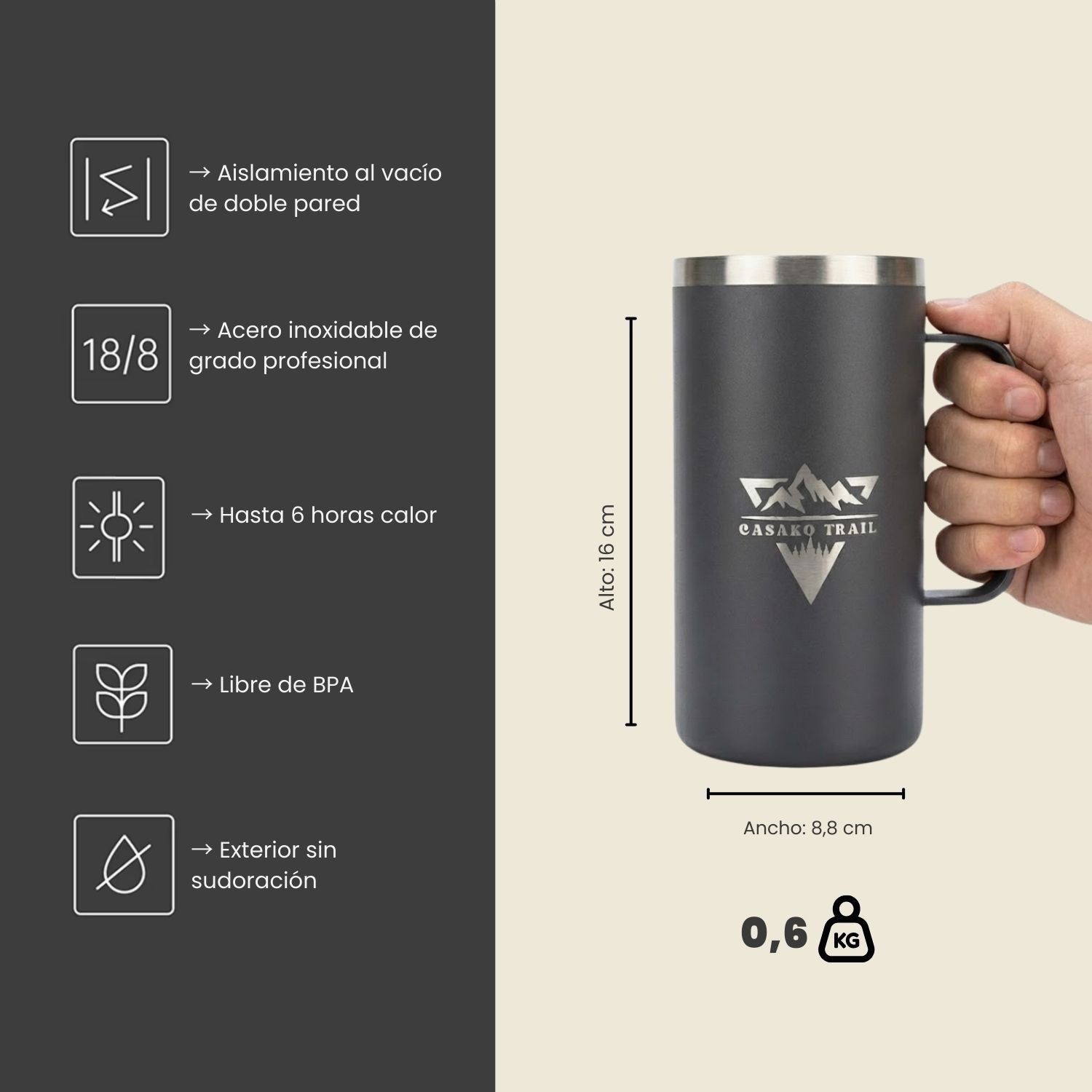 Calma, CASAKO TRAIL® se encarga de que tu próxima ruta llegue a tiempo, con garantía clara y drinkware hecho para durar.