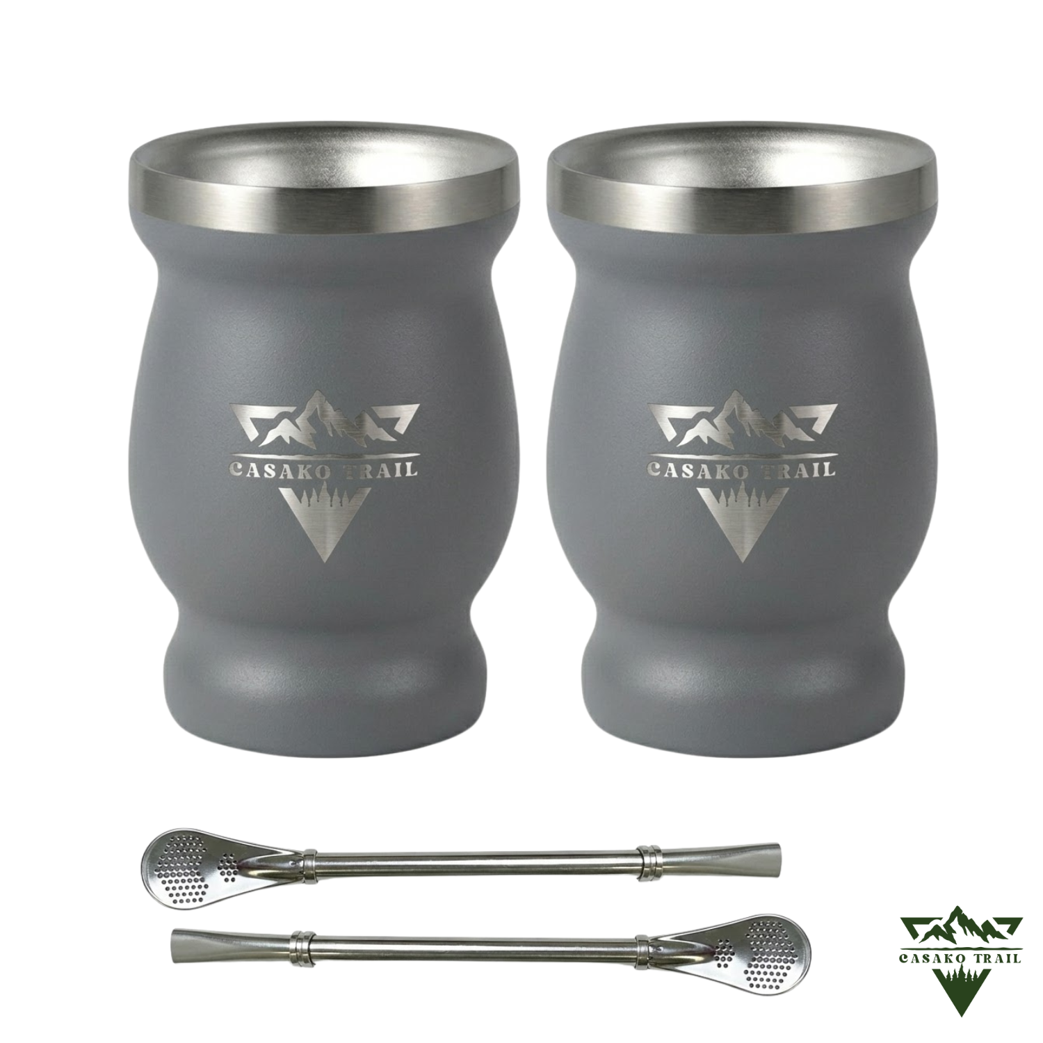 Vaso matero térmico 240 ml con bombilla acero inoxidable Set de 2 Gris Granito